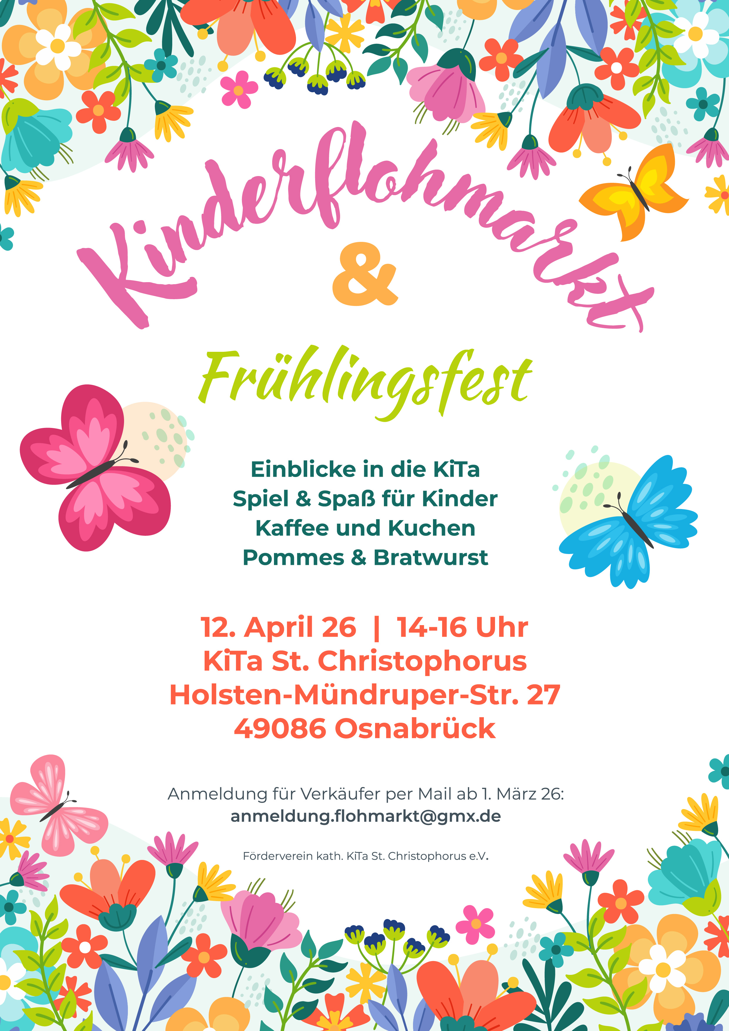 Der Förderverein der Kita St. Christophorus veranstaltet am Sonntag, den 12.04.2026 von 14:00-16:00 Uhr einen Kinderflohmarkt mit Frühlingsfest.