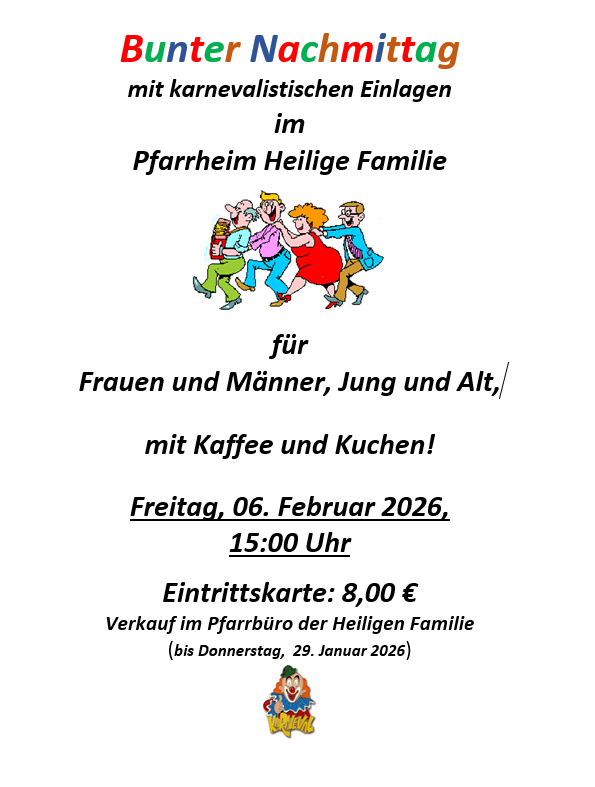 Der Vorverkauf im Pfarrbüro der Hl. Familie läuft bis zum 29.01.26.