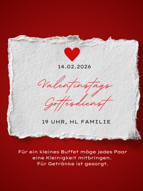 Gottesdienst am Valentinstag, 14.Februar um 19 Uhr mit Segnung der Paare.