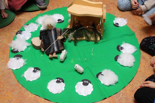 In unseren Freitagsrunden gab es jedes Mal eine Geschichte von Maria und Josef, was sie in einer Familie alles erleben. Gemeinsam singen, zusammen kommen, das ist ein wertvoller Aspekt in dieser vorweihnachtlichen Zeit. Zum Fest vom heiligen Nikolaus trafen sich alle Kinder und Eltern, Großeltern, die Zeit hatten in der Halle, um das Geschehen um den Nikolaus zu hören und zu sehen. Fast ganz heimlich ging der Nikolaus rum und verteilte ein Geschenk für jede Gruppe im Haus. Gemeinsam mit der Kita St. Christophorus feierten Familien am 30.11. einen Parallelgottesdienst zur Einstimmung in den Advent. Nach dem Start in der Antoniuskirche trafen sich die Familien in der Halle der Antoniuskita, um die Geschichte eines Hirten zu hören und anschließend selbst kleine Schafe zu gestalten. Den Abschluss feierten alle gemeinsam mit der Gemeinde wieder in der Kirche. Am 09.12. öffneten wir das Adventsfenster um 18.00 Uhr. Unsere Entdecker (Vorschulkinder) gestalteten einen adventlichen Impuls.