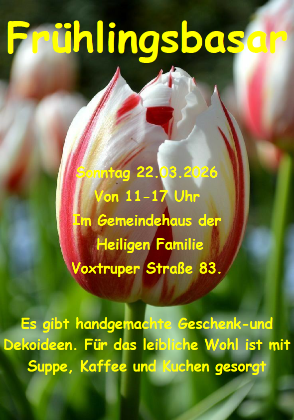 Sonntag, 22. März von 11 bis 17 Uhr im Gemeindehaus der Heiligen Familie, Voxtruper Straße 83
