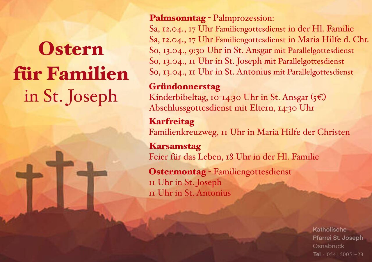 In der Hl. Familie feiern wir am Karsamstag um 18:00 Uhr eine Wort-Gottes-Feier zum Thema „Ostern – Eine Feier für das Leben.“ Dazu sind alle Kinder und deren Familien herzlich eingeladen.