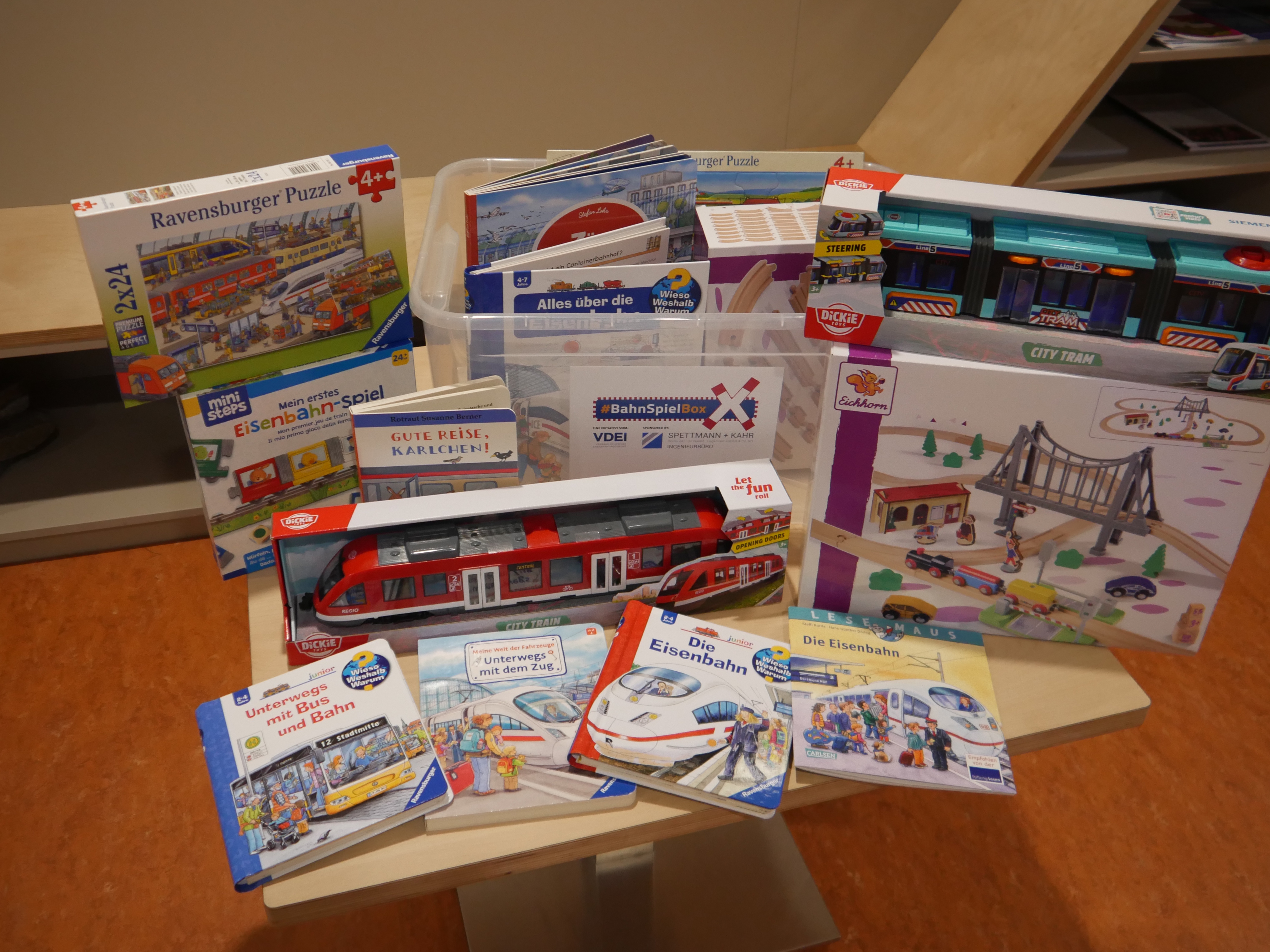Anfang der Woche haben wir eine Kiste voller neuer Spielmaterialien für unsere Kita geschenkt bekommen. Einige Kinder durften als erstes die neuen Spielsachen entdecken. Von Büchern über Puzzle und Eisenbahnschienen aus Holz war alles dabei. Wir bedanken uns ganz recht herzlich bei Frau Fülöp-von Hagen und der Firma „Spettmann + Kahr Ingenieurbüro“ für die tolle Spielespende. Zusammengestellt wurde die Kiste vom „Verein Deutscher Eisenbahn-Ingenieure e.V.“.