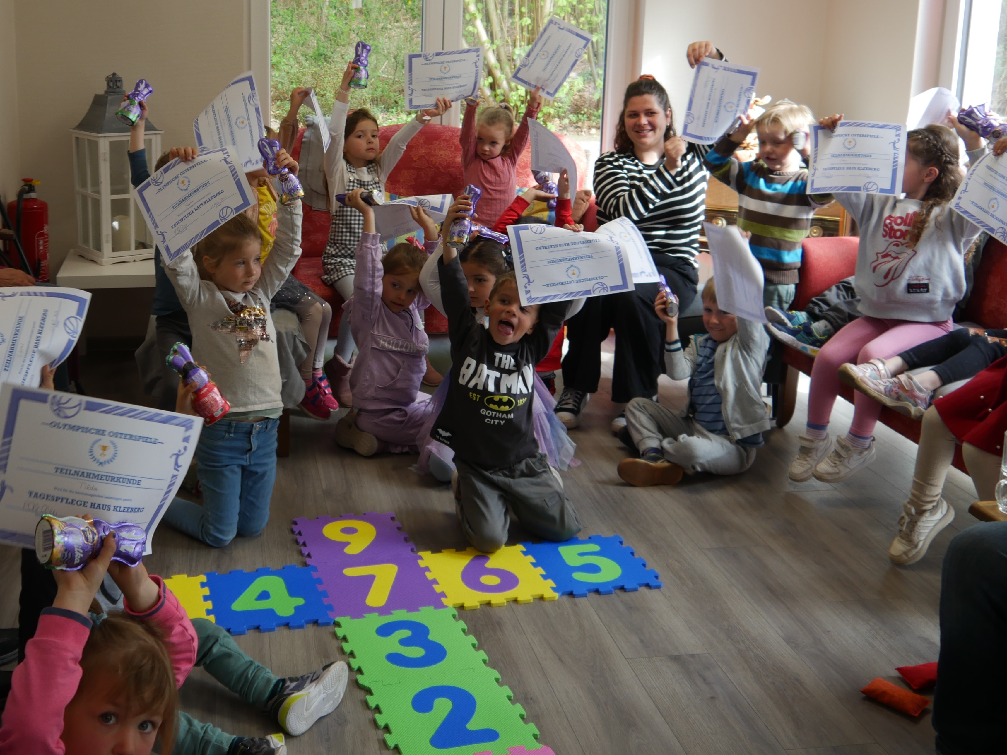 Am Freitag, den 11.04. haben wir zusammen mit allen Mittelkindern einen Ausflug zur Tagespflege Haus Kleeberg unternommen. Nach einem gemeinsamen Frühstück haben wir uns auf den Weg gemacht. Als wir am Haus ankamen, wurden wir herzlich begrüßt und es wurde bereits etwas für uns vorbereitet. Gemeinsam mit den Senioren haben wir einen Staffelwettbewerb veranstaltet, wo die Kinder ihr Können unter Beweis stellten. Zum Abschied bekamen die Kinder noch eine Urkunde und einen Schokohasen für ihren tollen Einsatz. Es war ein sehr schöner Tag, wo wir zusammen gesungen und gespielt haben.